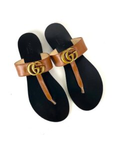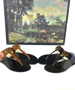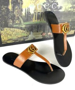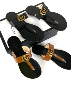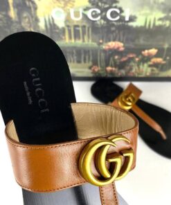 The leather thong sandal is embellished with the Double G hardware—an archival design from the ’70s.