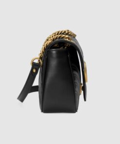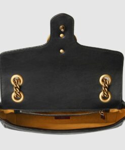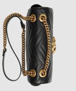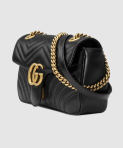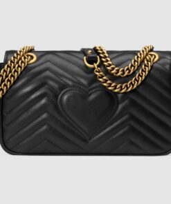The small GG Marmont chain shoulder bag has a softly structured shape and an oversized flap closure with Double G hardware. The sliding chain strap can be worn multiple ways, changing between a shoulder and a top handle bag. Made in matelassé chevron leather with a heart on the back.